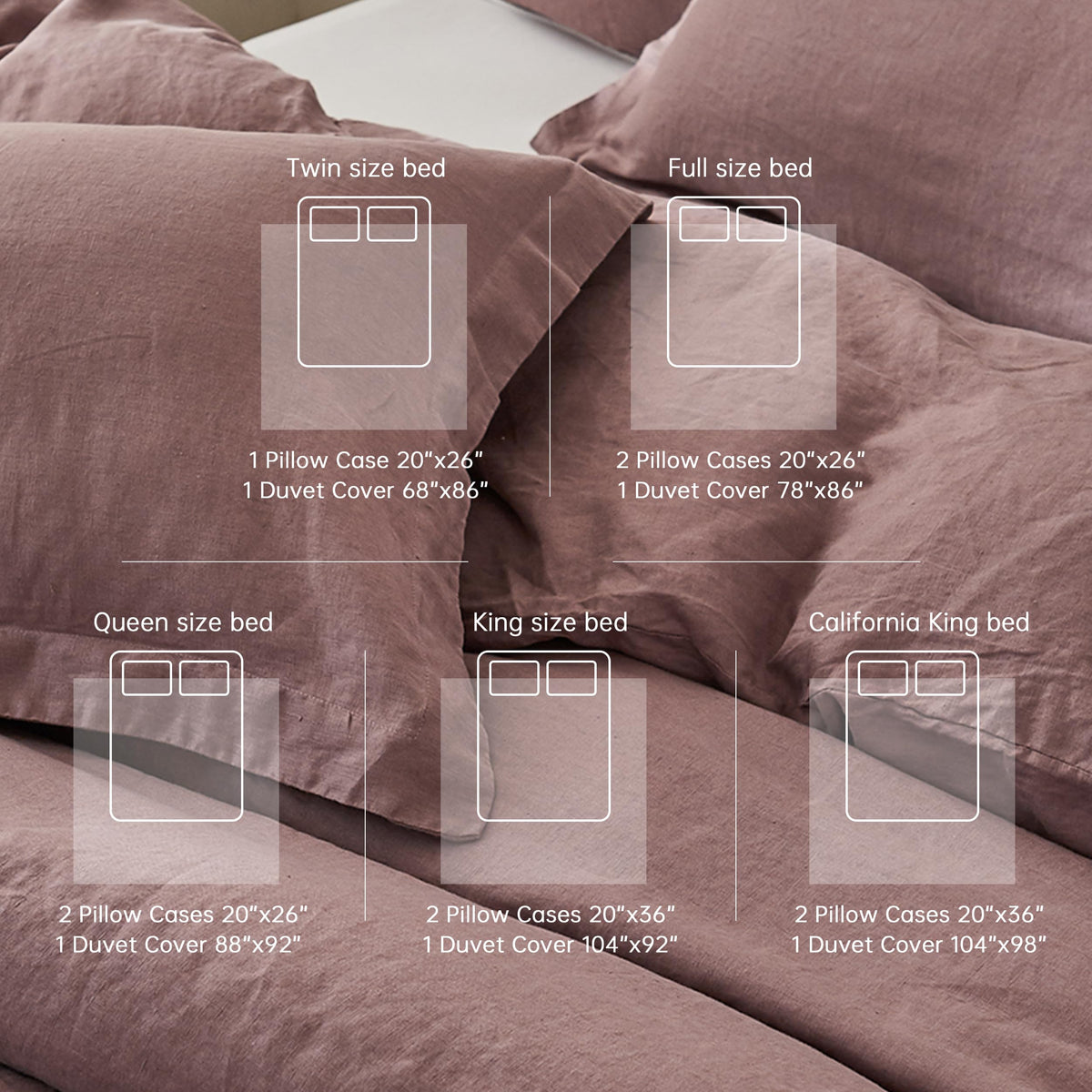 Material: 100% French Linencolor: Linen, White, Sage Green, Light Dusty Blue, Blush Pink,Classic Blue, Light Grey, Sand, Dark Grey, Rust, Olive Green, Ultimate Grey, Mustard Yellow, Lilac, Purple, Classic Bluesize: Duvet Cover (86''X68''), Pillowcases (20'' X 36'')Package Includes: Linen Duvet Cover Setfeatures:~We Select French Natural Linen Materials, Which Are Delicate, Soft And Breathable, Bringing You The Dual Enjoyment Of Nature And Luxury In Your Sleeping Environment.~The Fall Duvet Cover Twin Size Is Specially Designed With 4 Inner Corner Ties, Plus A Sophisticated Hidden Button Closure System To Ensure That The Quilt Core Is Firmly Fixed To Prevent The Filling From Shifting, And Keep The Bed Flat And Comfortable Even In Deep Sleep.~The Overall Design Is Simple Yet Elegant. The Pure Linen Fabric Can Be Perfectly Integrated With Any Style Of Bedroom Decoration, Adding A Touch Of Low-Key Luxury To Your Private Space.~We Know That A Good Sleeping Experience Comes From Every Tiny Detail, So Each Bed Set Of Products Is Delivered With 2 Spare Buttons To Ensure That You Can Enjoy Comfort Without Worrying About Unexpected Inconveniences.~Whether It Is For Personal Use Or As A Gift To Relatives And Friends, This 2-Piece Linen Bedding Set Queen Size Conveys A Persistence And Pursuit Of Quality Of Life. It Is Not Only Bedding, But Also A Display Of A Life Attitude. Let Us Immerse Ourselves In This Natural Gift From The French Countryside And Feel The Gentle Embrace Of Every Dream.Please Notes:1.Manual Measurement, Please Allow Slight Errors On Size.2.Different Colors Under Light:We Have Comfy European Twin Size Duvert Cover Set Of 2 In Various Colors For You To Choose From. At The Same Time, The Colors Displayed Under Different Lighting, Display Settings Or Resolutions Will Be Slightly Different.