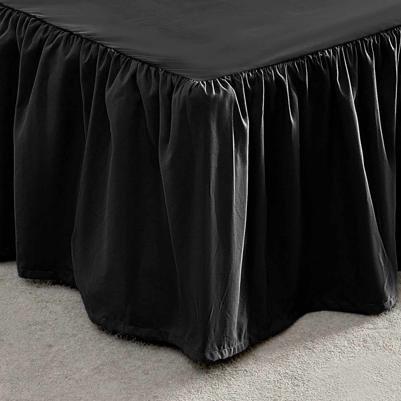 Sleep Zone Wrap Around Ruffled Bed Skirts Twin Size, Anti-Static Bedskirt Dust Ruffles With 15 Inches Tailored Drop, Easy Fit, Wrinke Free And Fade Resistant, Black, Twin