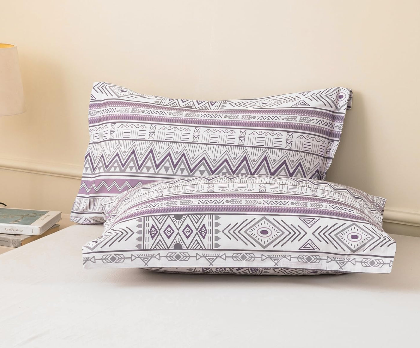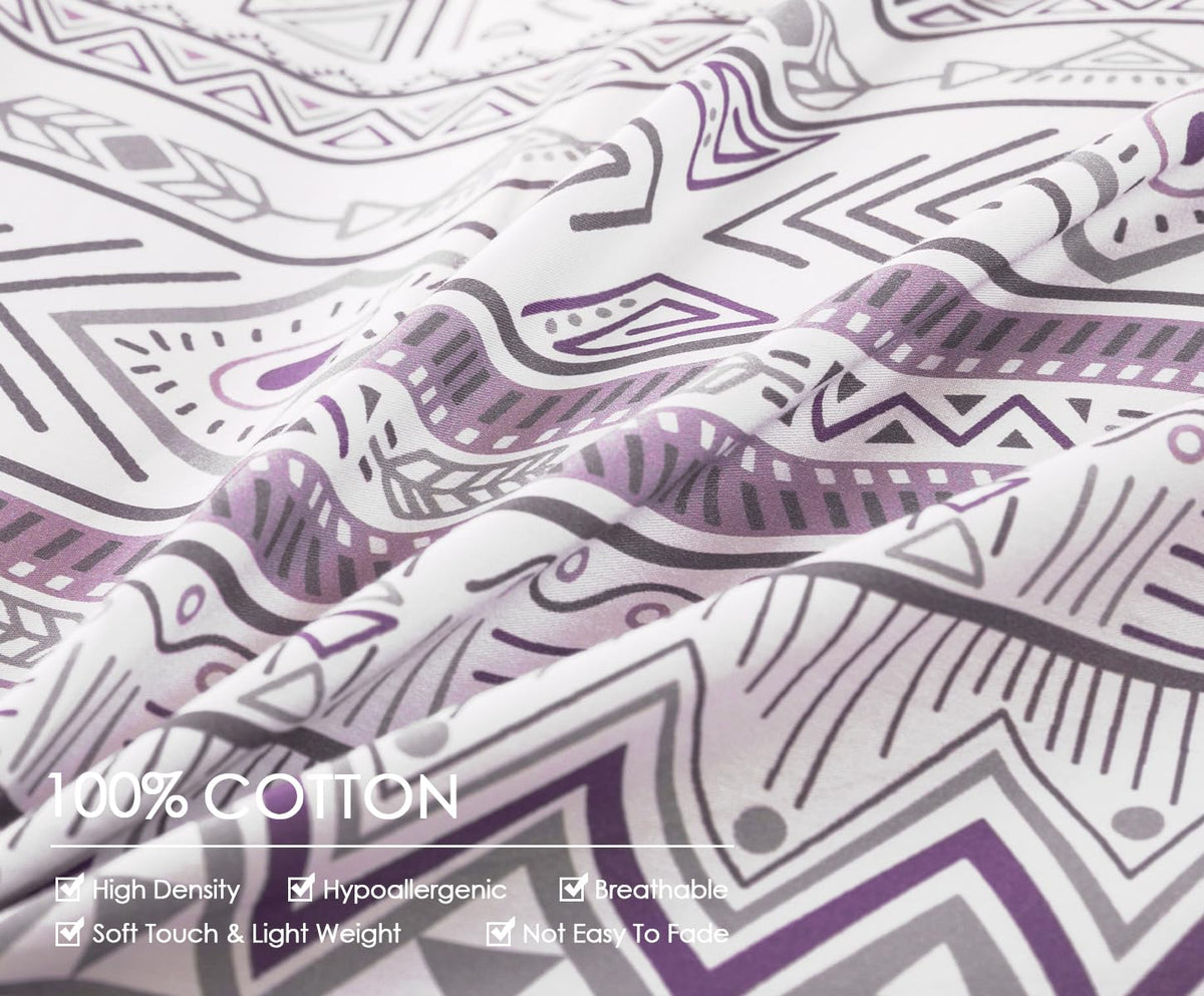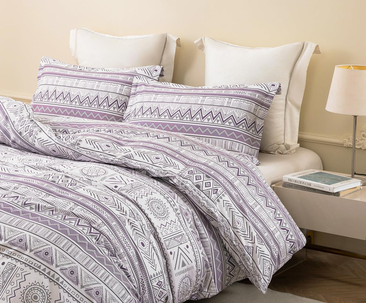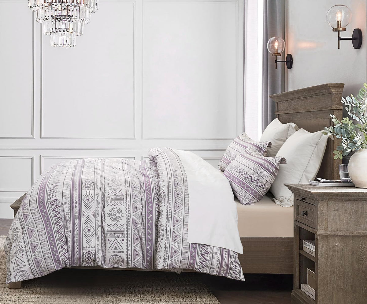 Sleepbella Boho Chic Striped King Size Duvet Cover Set - 100% Cotton With Button Closure In White And Purple