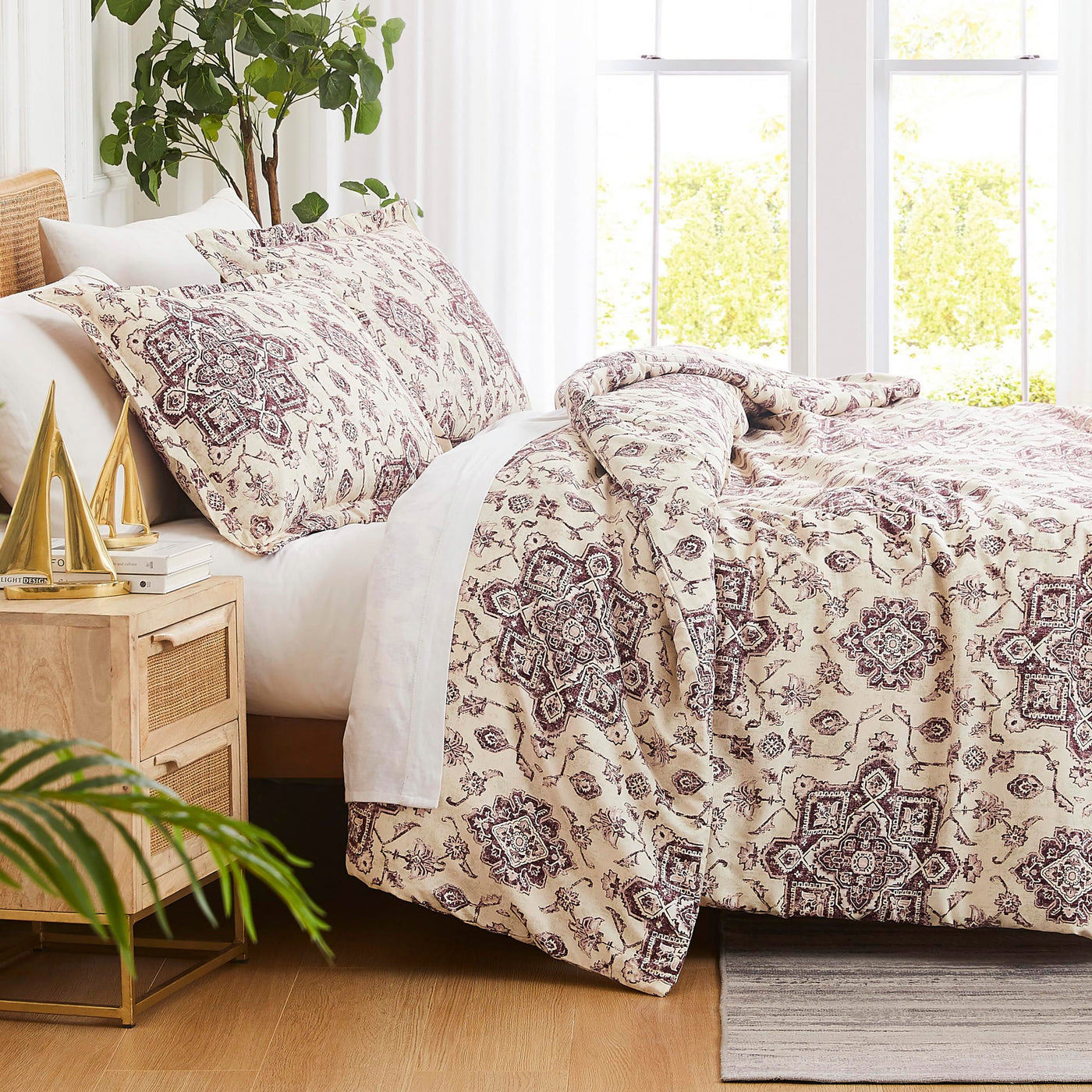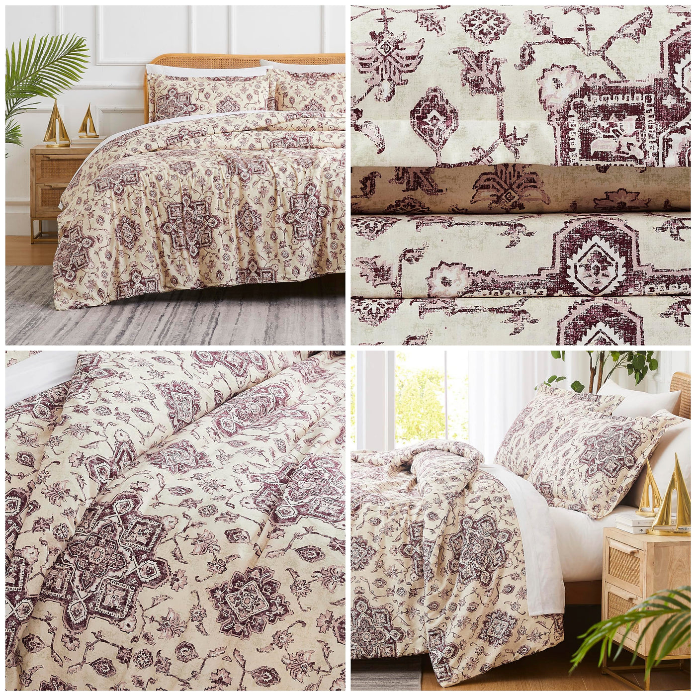 Q: What materials are used in the Southshore Fine Living Persian Print Duvet Cover Set?A: The duvet cover set is crafted from ultra-soft, double-brushed 100 GSM microfiber, ensuring a luxurious feel and comfort for your bedding.