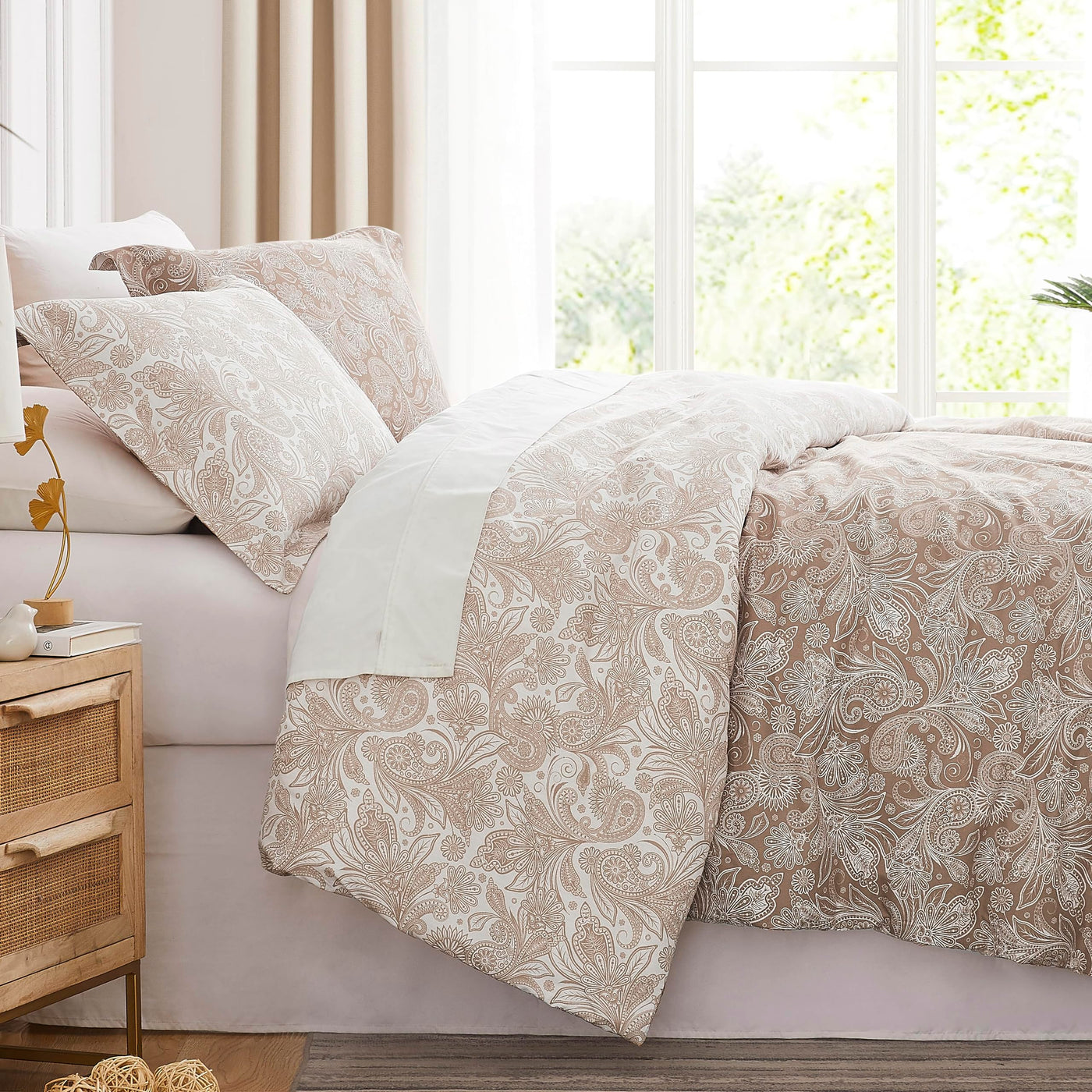Q: Can the duvet cover be reversed for a different look?A: Yes, the duvet cover features a reversible design, allowing you to easily switch between two different paisley patterns by simply flipping it over.