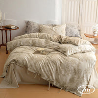 Q: How do I care for the VM VOUGEMARKET duvet cover set?A: This duvet cover set is machine washable with similar colors. It is recommended to tumble dry on low heat, avoid bleach, and cool iron if needed after washing for best maintenance.