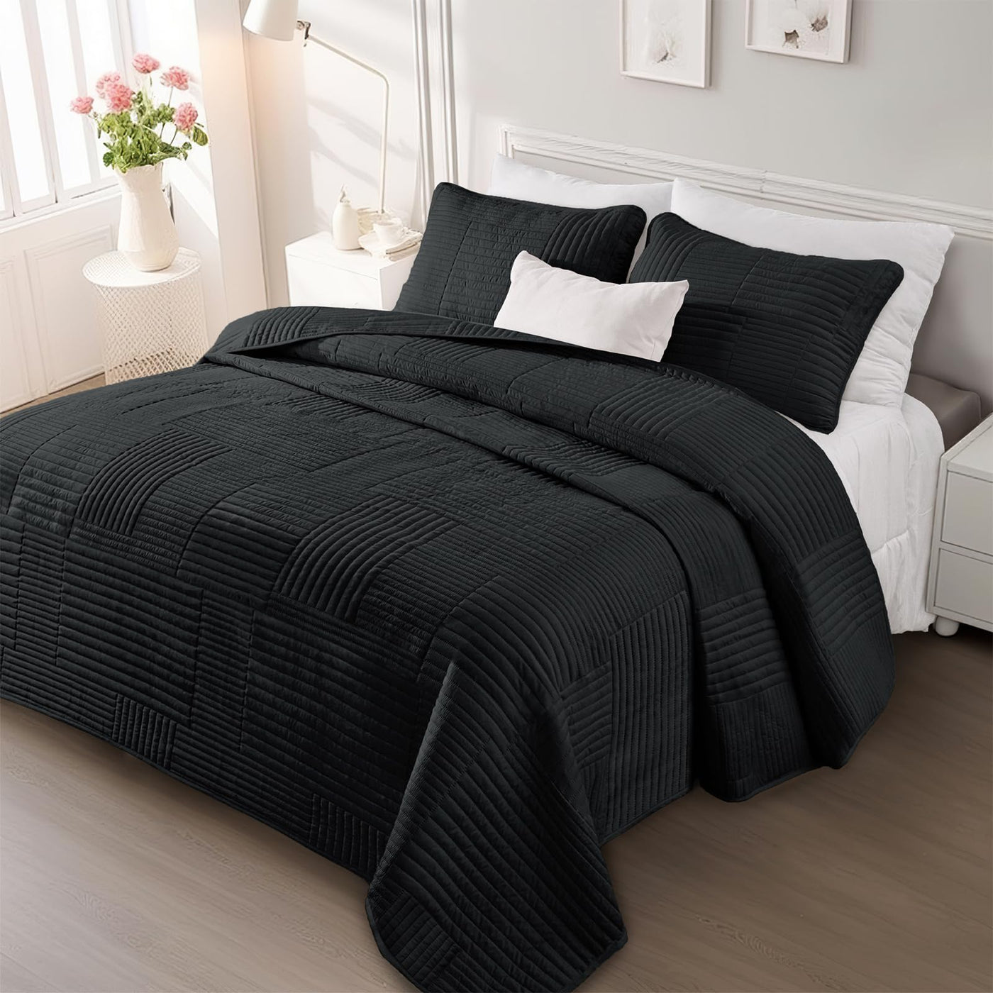 Whale Flotilla Ultra Soft Twin Quilt Bedding Set, Lightweight Fall Black Quilts Bedspreads Twin Size, Ultrasonic Geometric Cover
