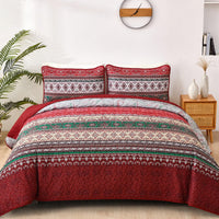 Wongs Bedding Boho Queen Quilt Set, Red Bohemian Quilt Bedding Set, Lightweight Bed Decor Bedspread For All Season Reversible Mi