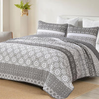 3 Piece Gey Bohemian Striped Floral Quilt Set&Nbsp;Quilt Set Include:&Nbsp;1 X Queen Quilt&Nbsp;,2 X Pillowcase&Nbsp;&Nbsp;&Nbsp;&Nbsp;Size Information:&Nbsp;Queen-Quilt 96 X 90 ,Pillowcase 20 X 28 &Nbsp;King-Quilt 106 X 90 ,Pillowcase 20 X 38 &Nbsp;Easy Care&Nbsp;Machine Washable In Cold Water, Tumble Dry On Low Temperature, Do Not Bleach.