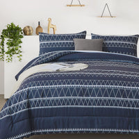 Wongs Bedding Navy Blue Comforter Set King,Reversible Boho Triangle Down Alternative Comforter Set For King Bed - 3 Pieces (1 Co