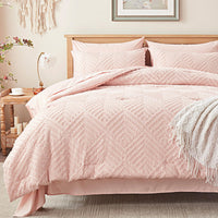 Zzlpp Queen Comforter Set 7 Pieces, Pink Tufted Bed In A Bag With Comforter And Sheets, All Season Boho Bedding Sets With 1 Comf
