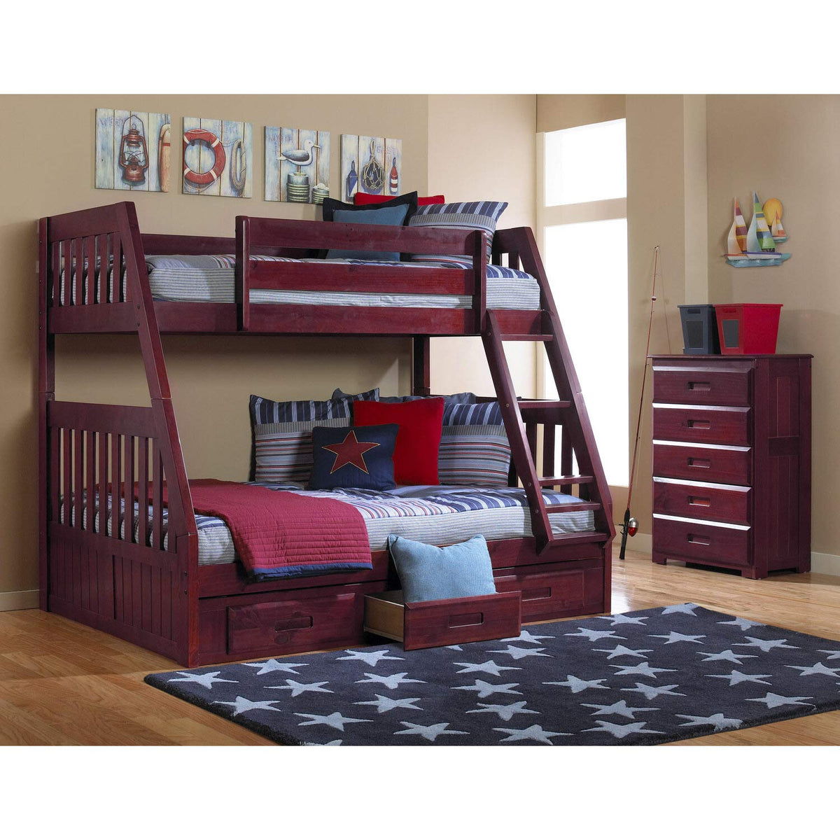 American Furniture Classics Model 2818-Tfm, Solid Pine Mission Twin Over Full Bed With Three Drawers In Merlot. Bunk