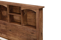 Add much needed function and storage with our twin sized bookcase headboard. This headboard features five shelving areas and is accented with attractive arch elements. Easily attach this headboard to your metal frame bed or our matching mates bed model 6005. Finished in an attractive Mountain Oak laminate.