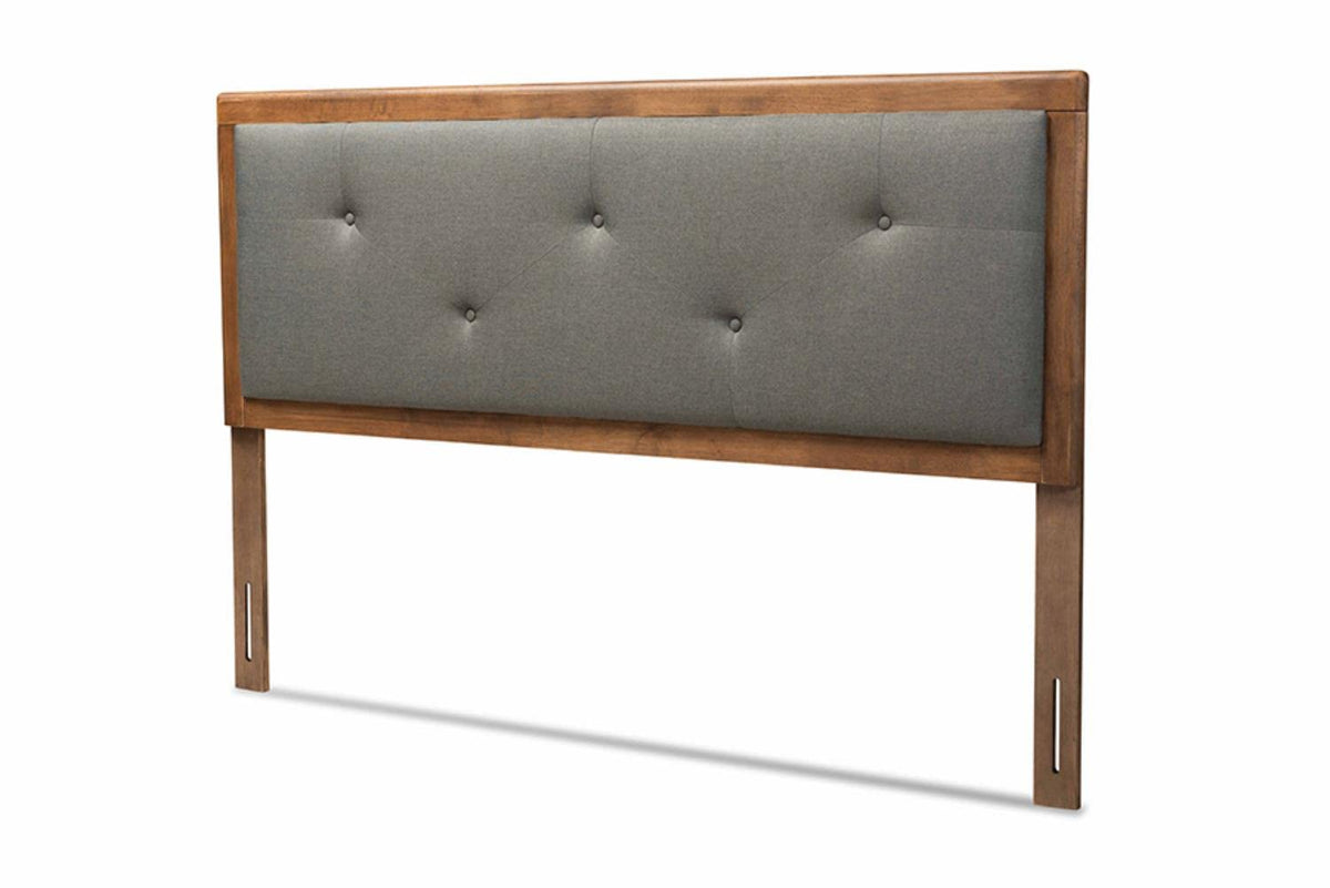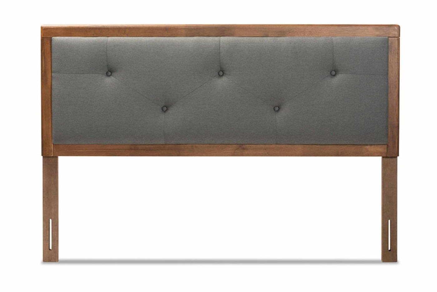 Baxton Studio Abner Modern and Contemporary Transitional Dark Grey Fabric Upholstered and Walnut Brown Finished Wood Full Size Headboard