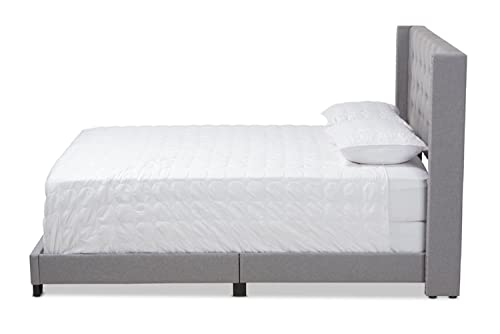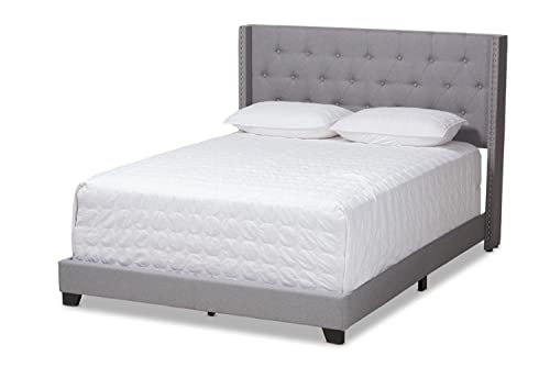 Baxton Studio Brady Fabric Tufted Full Bed in Light Grey