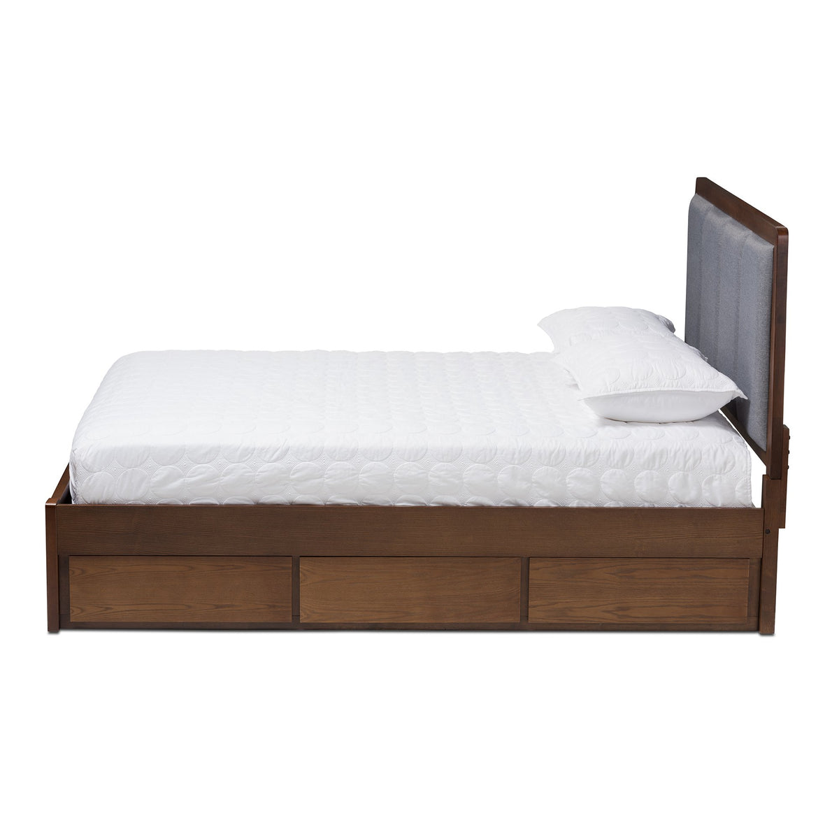Baxton Studio Brannigan Modern and Contemporary Dark Grey Fabric Upholstered Walnut Finished Queen Size Storage Platform Bed