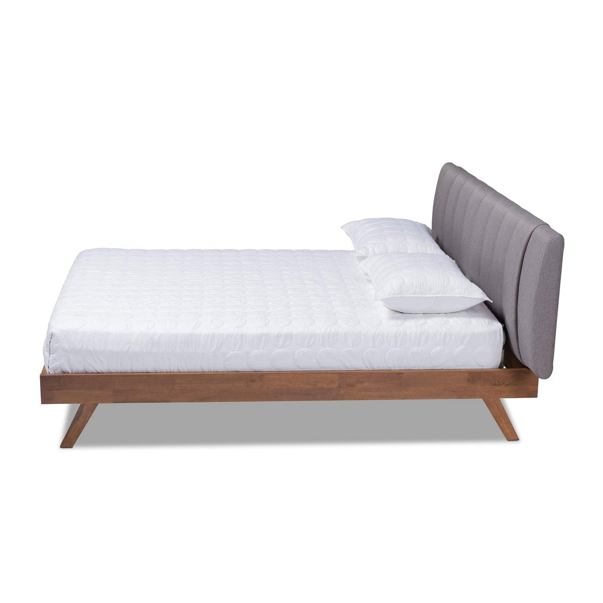 Baxton Studio Brita Mid-Century Modern Grey Fabric Upholstered Walnut Finished Wood Queen Size Bed