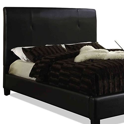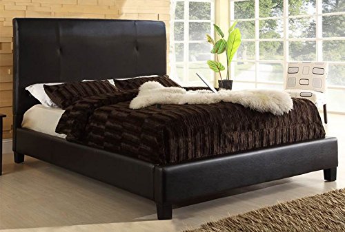 Move your bedroom into the modern age with our Cambridge bed. This completely contemporary item is a prime example of discount bedroom furniture that doesn’t look the least bit budget. Sleek styling will instantly update any bedroom. Dark-Brown faux-leather upholstery, tall headboard, solid-wood construction and stylish legs combine for a captivating design. 57"W x 81"d x 41.73"h, Headboard: 41.73" High footboard: 7.87" High side rail height: 7.87".