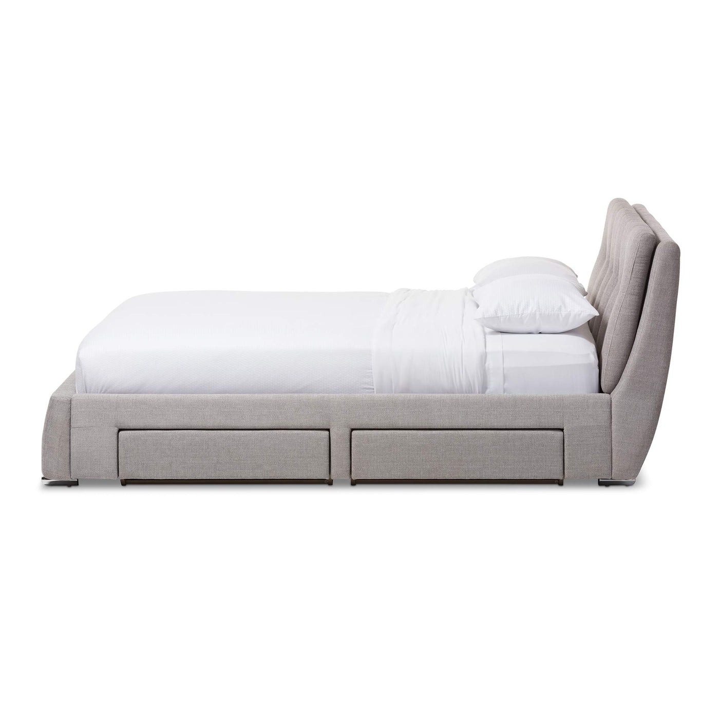 Baxton Studio Camile Modern and Contemporary Grey Fabric Upholstered 4-Drawer King Size Storage Platform Bed