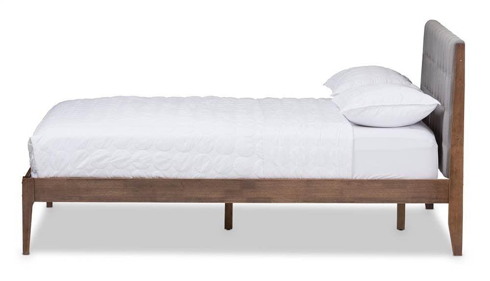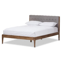 Baxton Studio Clifford Mid-Century Light Grey Fabric and Medium Brown Finish Wood King Size Platform Bed
