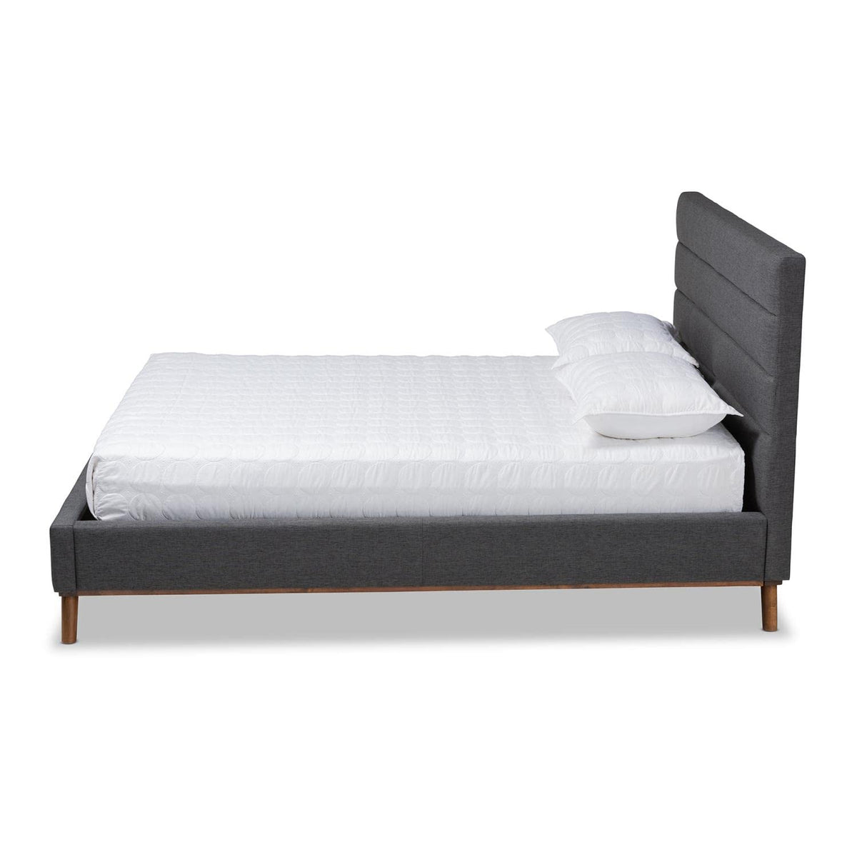 Baxton Studio Erlend Mid-Century Modern Dark Grey Fabric Upholstered Queen Size Platform Bed