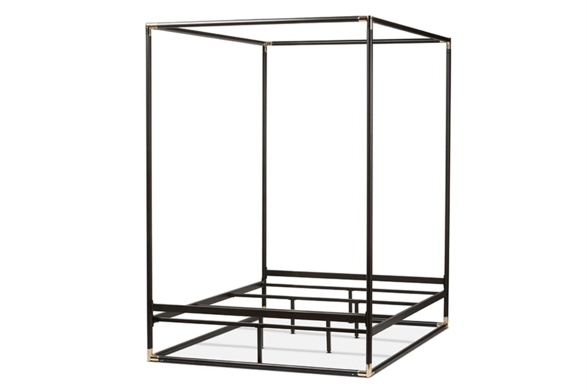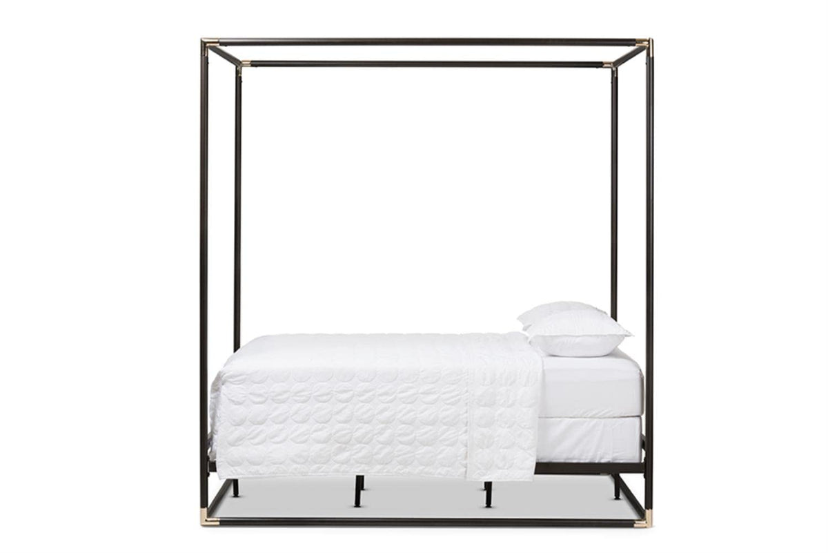Baxton Studio Eva Vintage Industrial Black Finished Metal Canopy Queen Bed Black/Metal/Vintage Industrial