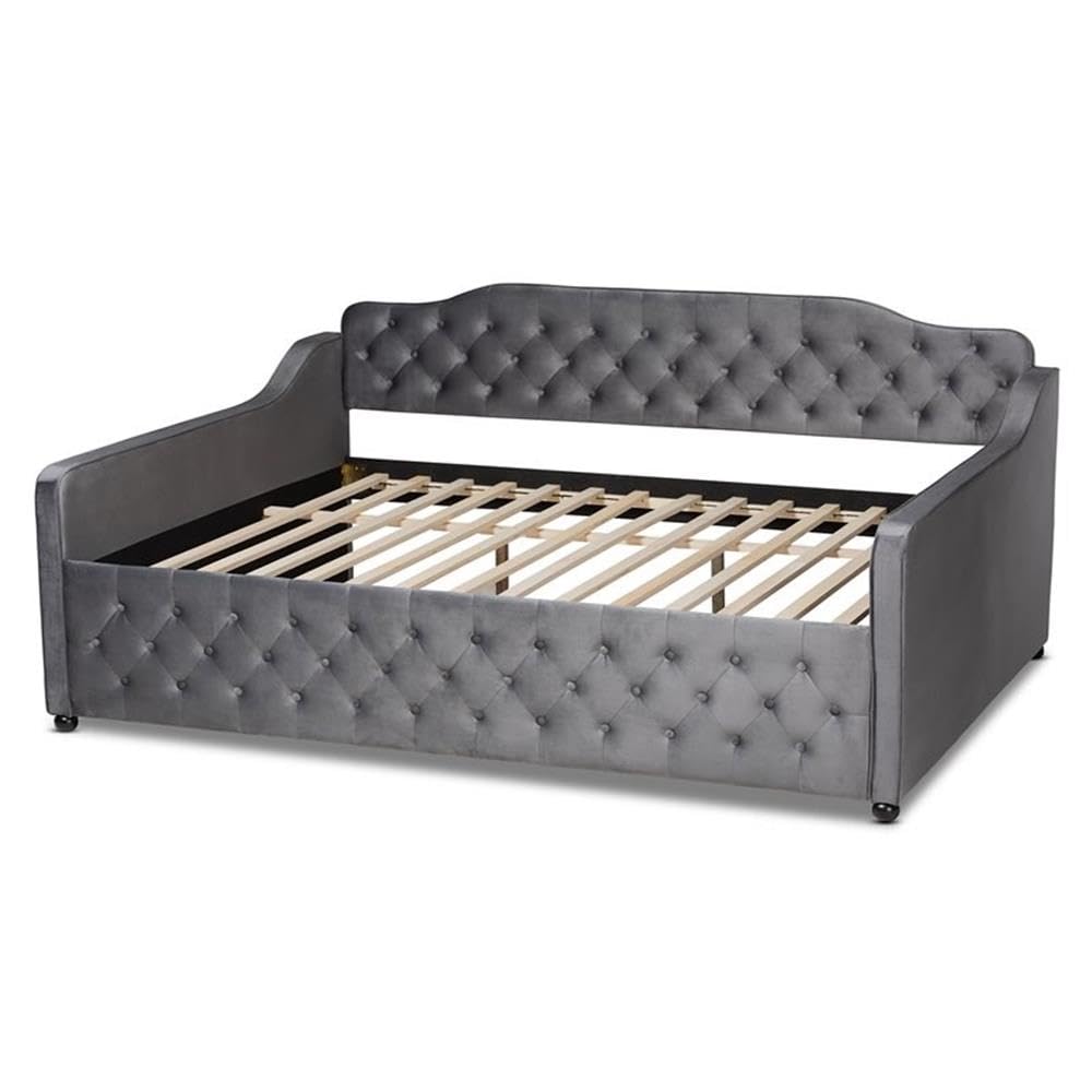 Baxton Studio Freda Gray Velvet Button Tufted Full Size Wood Daybed