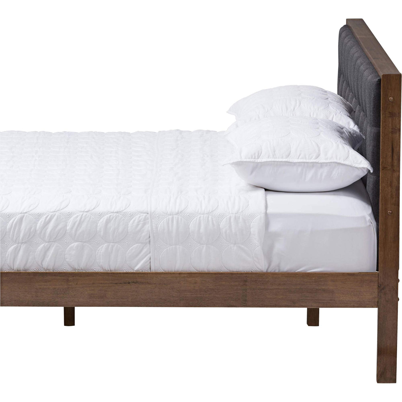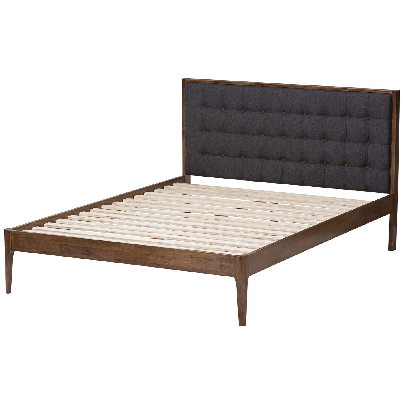 Baxton Studio Jupiter Tufted Fabric Upholstered Full Platform Bed In Gray/Walnut