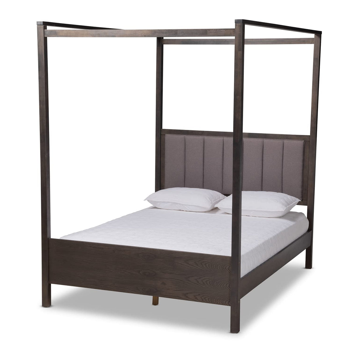 Baxton Studio Natasha Modern and Contemporary Grey Fabric Upholstered and Walnut Brown Finished Wood King Size Platform Canopy Bed