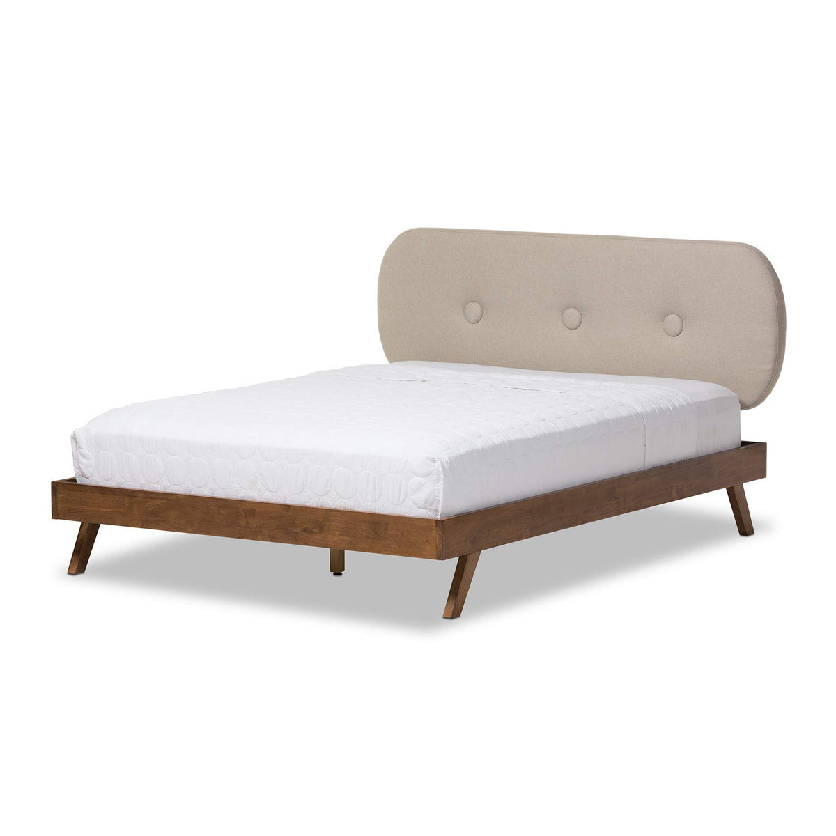 Baxton Studio Penelope Mid-Century Modern Solid Walnut Wood Grey Fabric Upholstered Full Size Platform Bed