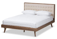 Baxton Studio Soloman Tufted King Platform Bed in Beige and Walnut