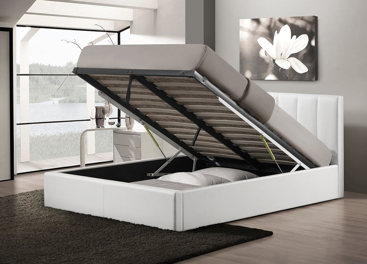 Comfortable plus functional, our Templemore Leather Contemporary Queen-Size Bed will challenge your ideas about discount bedroom furniture. A gas-lift mechanism reveals a healthy dose of storage space underneath the mattress. This contemporary platform bed boasts faux-leather upholstery that invites you to slumber in style. A metal-and-wood frame supplies exceptional stability.