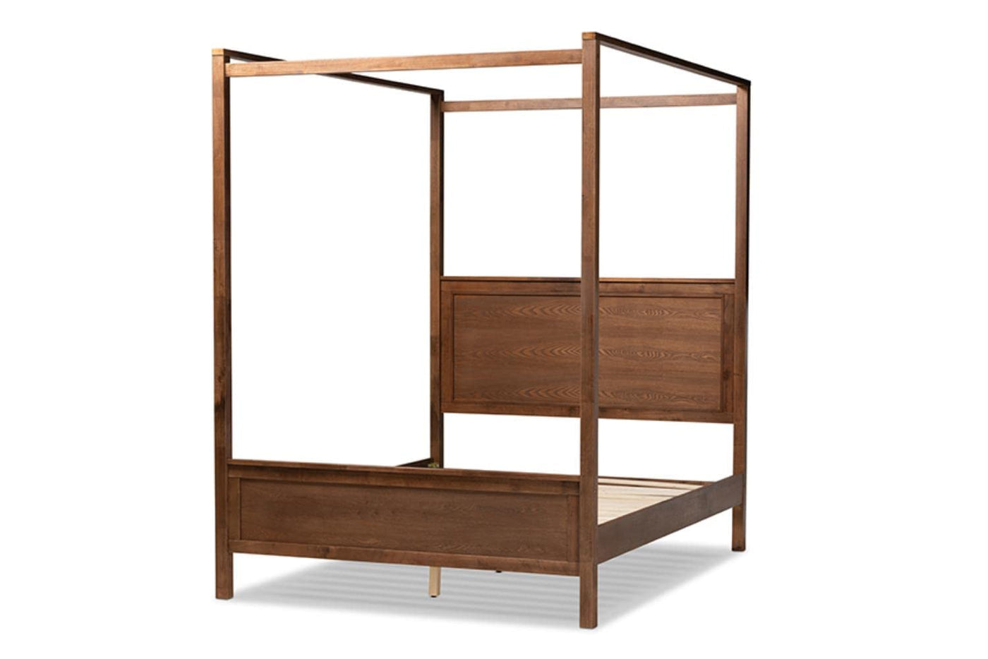 Baxton Studio Veronica Modern and Contemporary Walnut Brown Finished Wood King Size Platform Canopy Bed