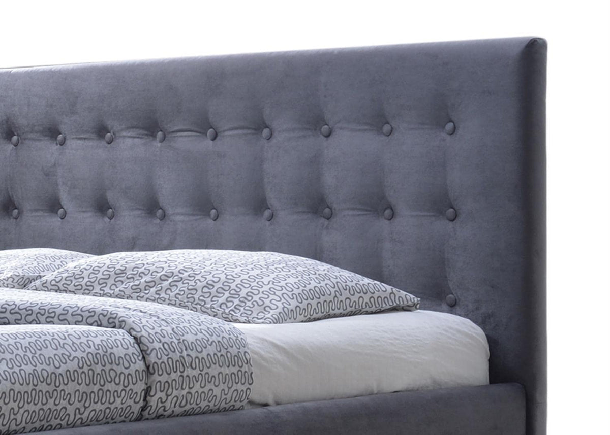A luxurious, velvet bed is the ultimate in sophistication and decadence. Touch me textures, such as faux-fur, velvet and silk feeling give this modern bedroom piece an irrestible allure. Featuring minimalist design, the Margaret draws the attention by adding the buttons detailing on the headboard, footboard and the side rails. To add luxury, all sides are padded evenly to create a harmony visibility. Made in Malaysia, this queen size bed requires assembly.