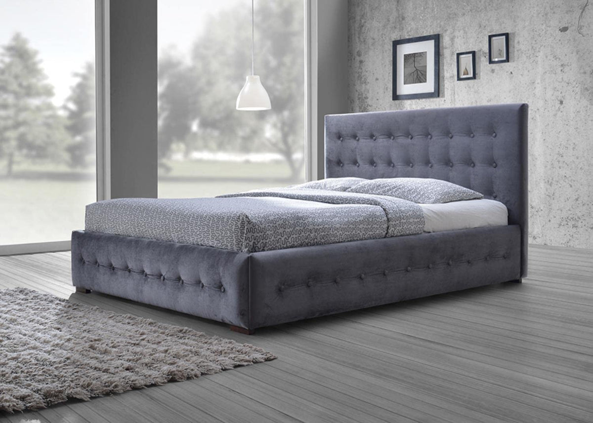 Baxton Studio Wholesale Interiors Margaret Modern and Contemporary Velvet Button-Tufted Platform Bed, Queen, Grey