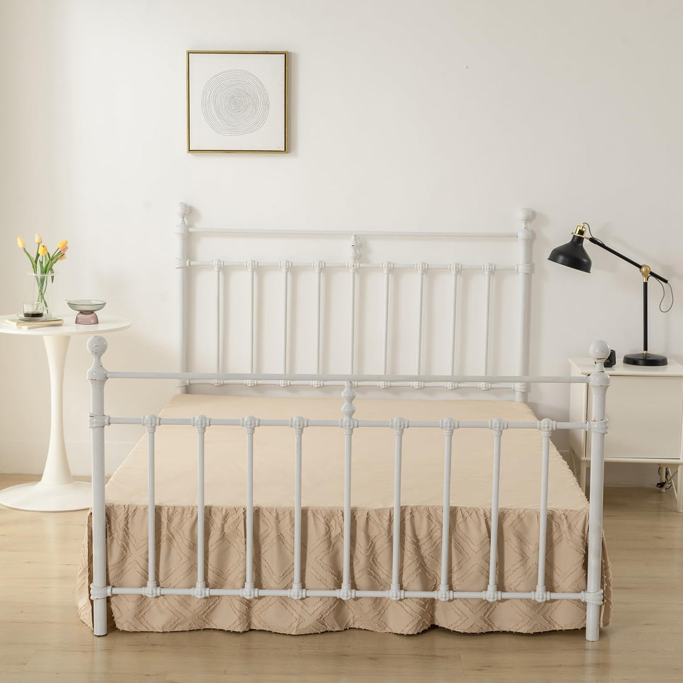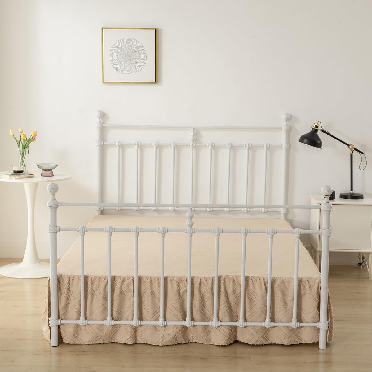 Bed Skirt Queen Size, Ruffled Bed Skirt With Split Corners, Queen Bed Skirt 14 Inch Drop, Boho Queen Size Bed Skirt White For Ru