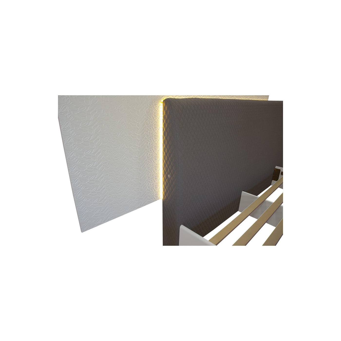 Combined With Sophistication And Modern Design. This Naple Bed Will Add A New Look To Your Bedroom. This Bedroom Set Is Made Of Poplar Wood, Mdf, Lacquer And Covered In High Gloss. The Head Board Is Upholstered In Gray Polyester Blend Fabric And Comes With Led Lighting. The Bed Comes With Wooden Slats, Therefore, A Box Spring Or Foundation Is Not Required.Dimensions:Eastern King Bed 123"L X 90"D X 48"Hcolor: Gray (Silver Line)Material: Poplar Wood, Mdf, Lacquer, High Gloss And Polyester Blend Fabricincludes: Bed Onlyassembly Is Required