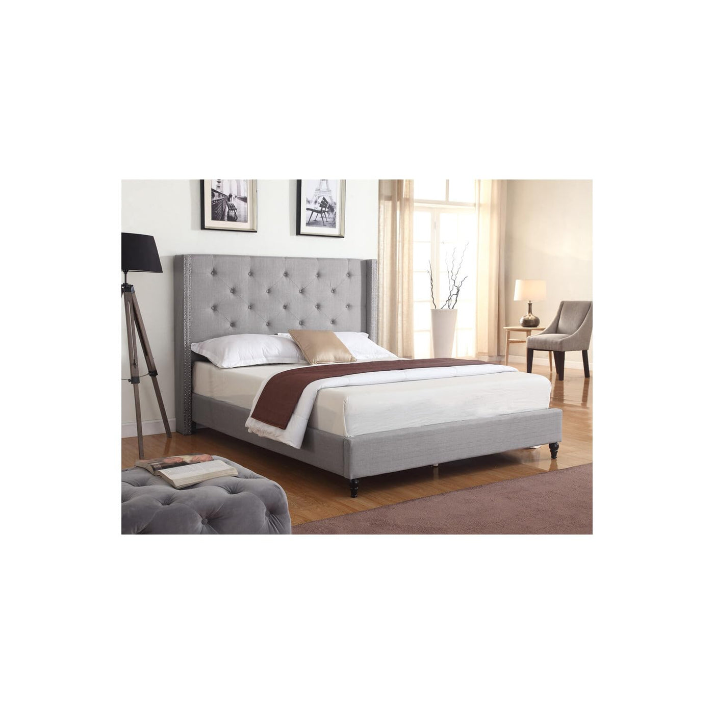 Best Master Furniture Vero Tufted Wingback Platform Bed, Queen, Grey