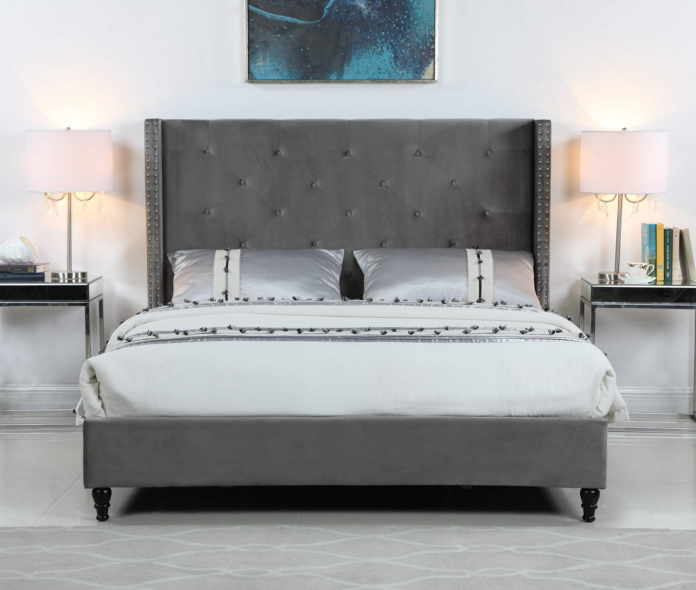 Best Master Furniture Yy129 Vera Tufted Velour Platform Bed, Full Grey Velvet