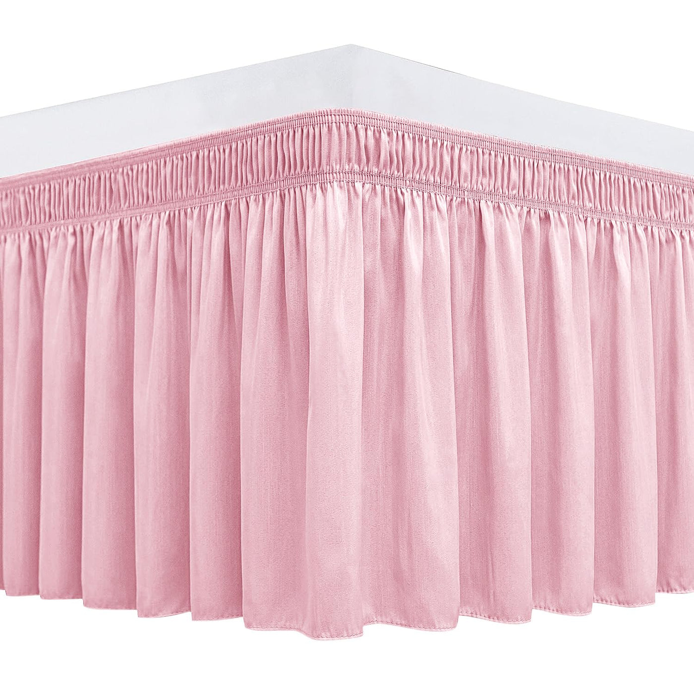 Biscaynebay Wrap Around Bed Skirts For Full & Full Xl Beds 15' Drop, Pink Adjustable Elastic Dust Ruffles Easy Fit Wrinkle & Fa