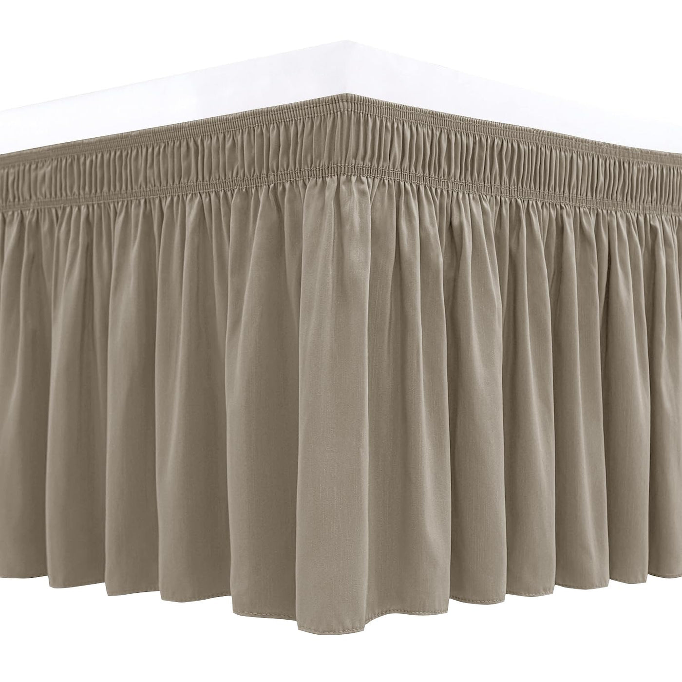 Biscaynebay Wrap Around Bed Skirts For Full & Full Xl Beds 15' Drop, Taupe Adjustable Elastic Dust Ruffles Easy Fit Wrinkle & F