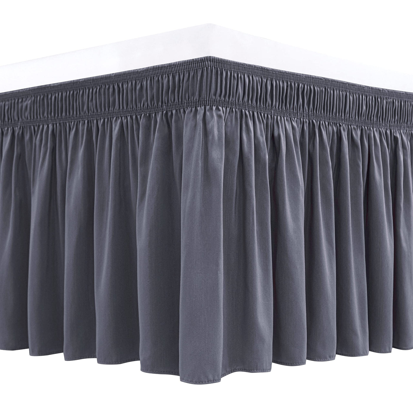 Biscaynebay Wrap Around Bed Skirts For King & Cal King Beds 19' Long Drop, Dark Grey Adjustable Elastic Dust Ruffles Easy Fit W