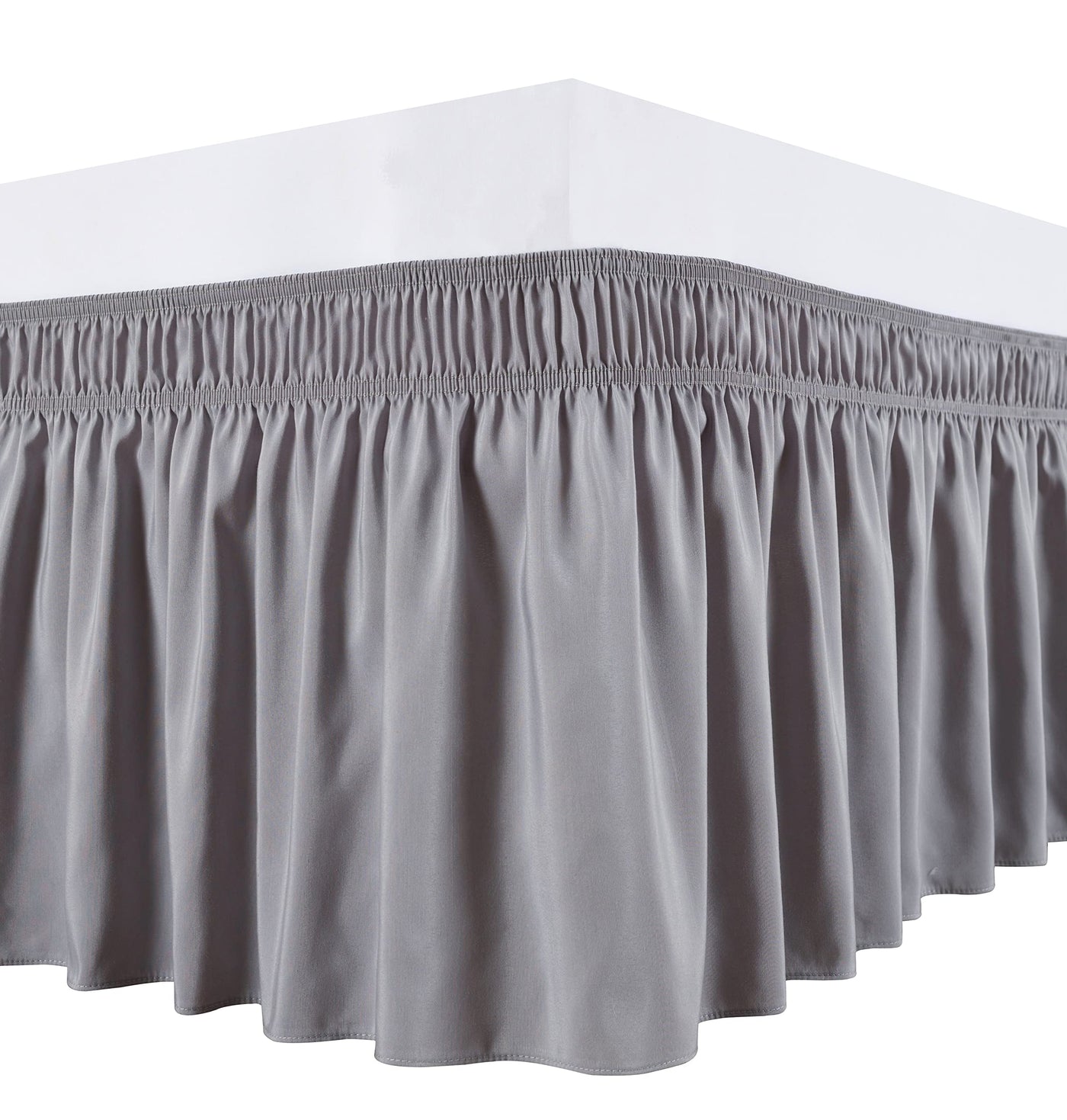 Biscaynebay Wrap Around Bed Skirts For King & Cal King Beds 22' Long Drop, Silver Grey Adjustable Elastic Dust Ruffles Easy Fit