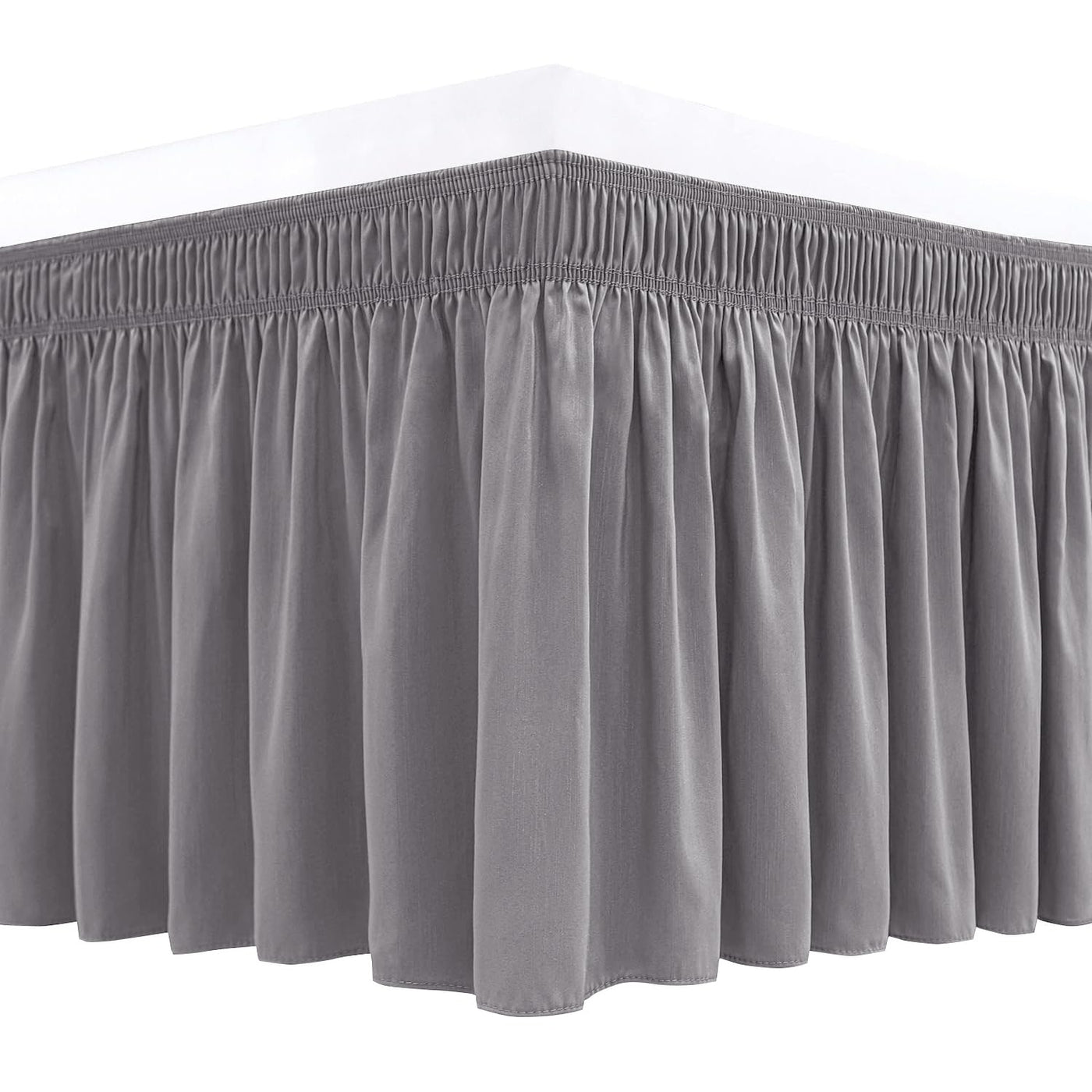 Biscaynebay Wrap Around Bed Skirts For King & Cal King Beds Short Drop Of 12', Silver Grey Adjustable Elastic Dust Ruffles Easy