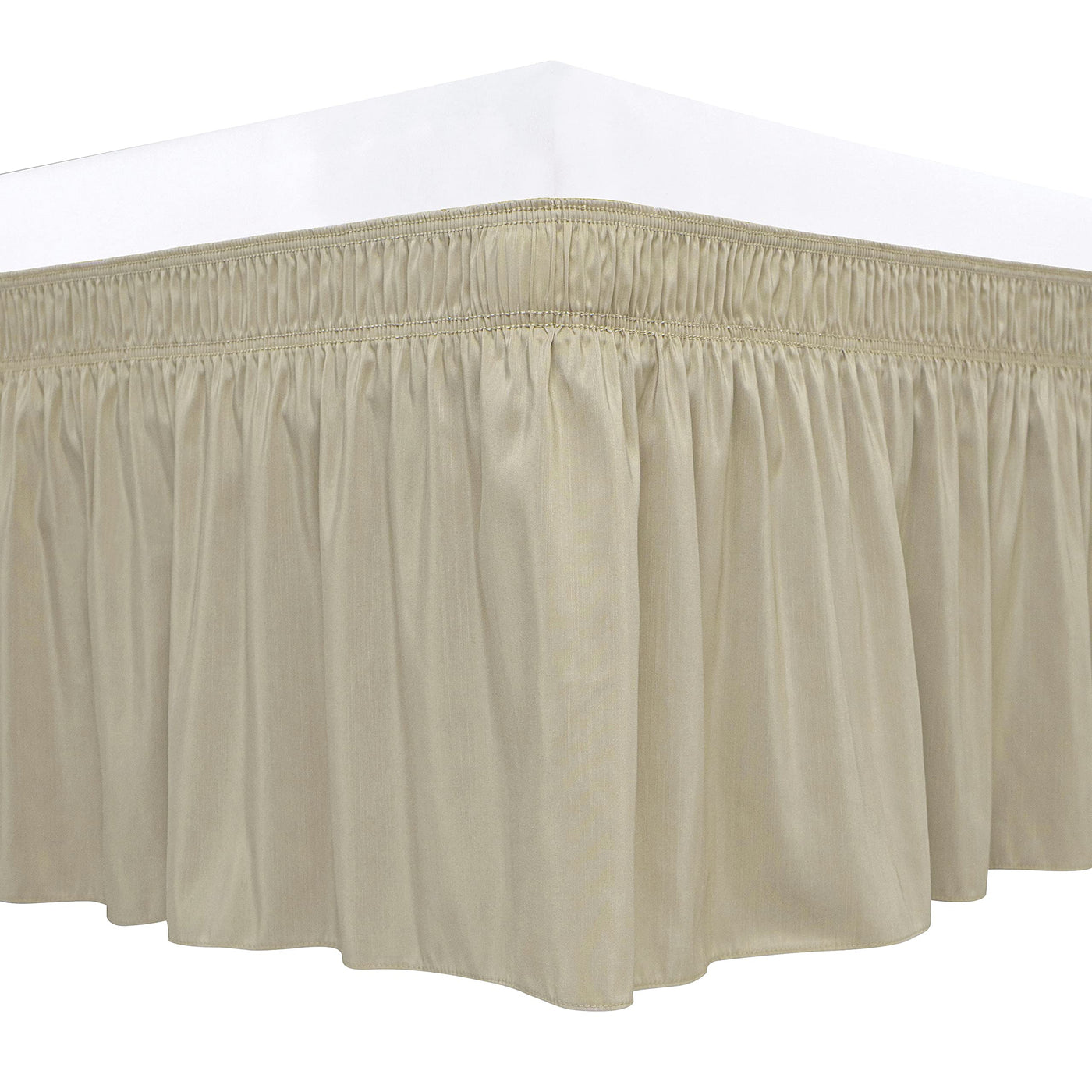 Biscaynebay Wrap Around Bed Skirts For King & Cal King Beds With 21' Drop, Camel Grey Adjustable Elastic Dust Ruffles Easy Fit