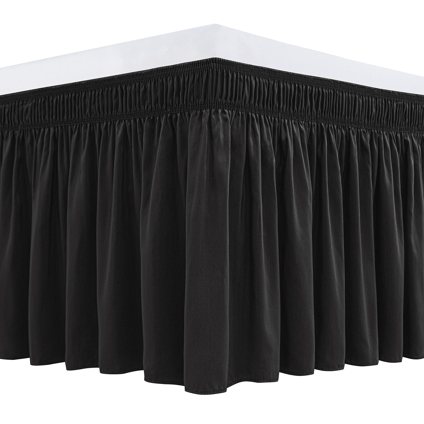 Biscaynebay Wrap Around Bed Skirts For Queen Beds 16' Drop, Black Adjustable Elastic Dust Ruffles Easy Fit Wrinkle & Fade Resis