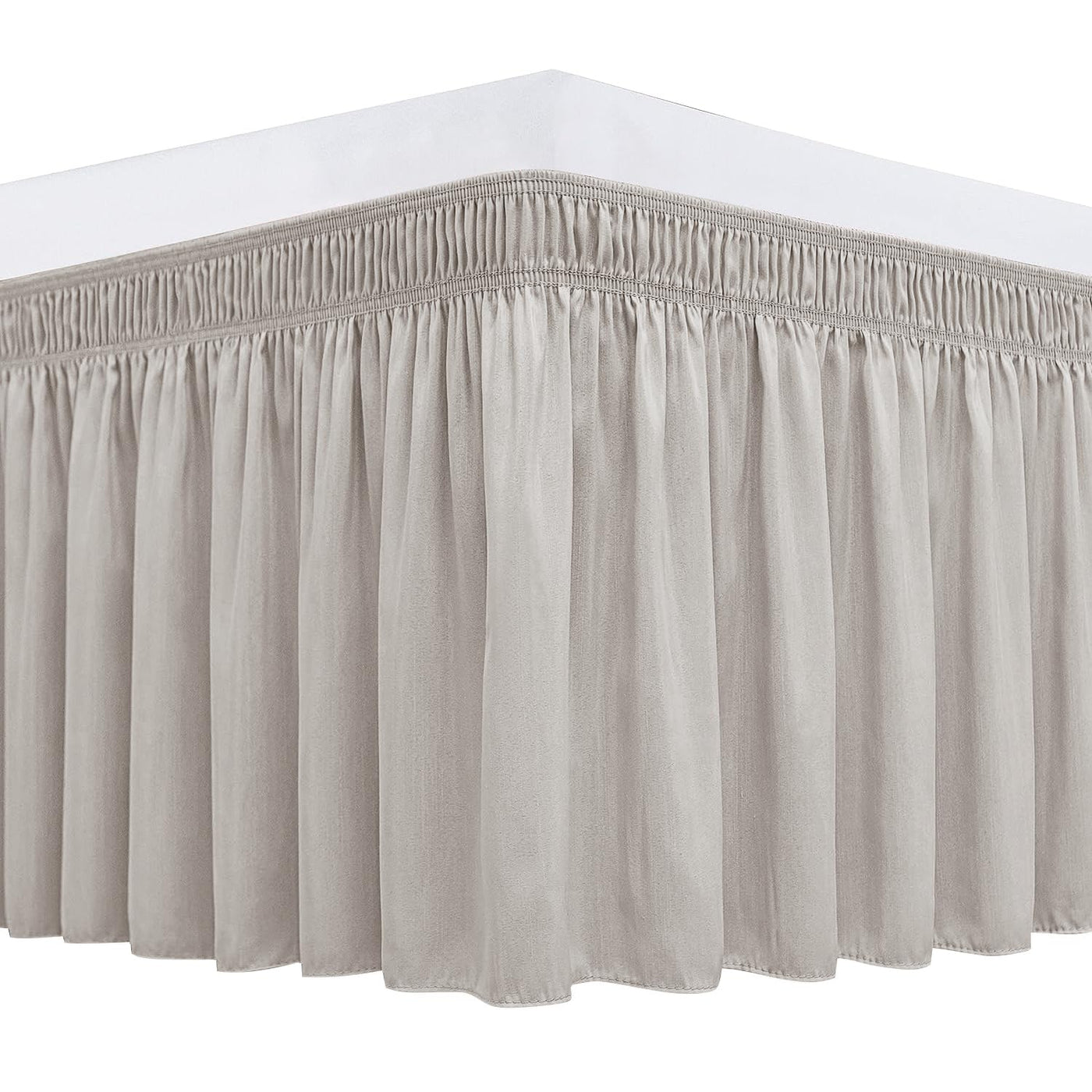 Biscaynebay Wrap Around Bed Skirts For Queen Beds With 18' Drop, Camel Grey Adjustable Elastic Dust Ruffles Easy Fit Wrinkle Re