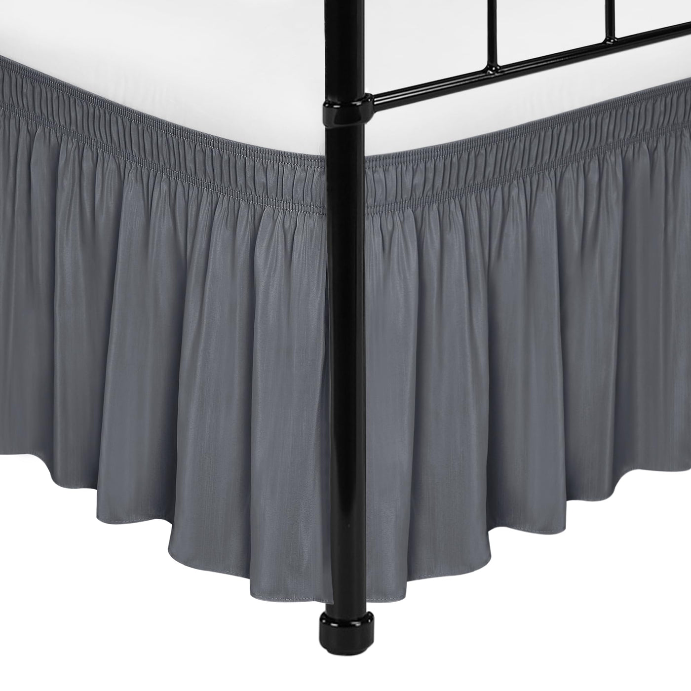 Biscaynebay Wrap Around Bed Skirts With Split Corners For King Beds 18' Drop, Dark Grey Adjustable Elastic Dust Ruffles Easy Fi