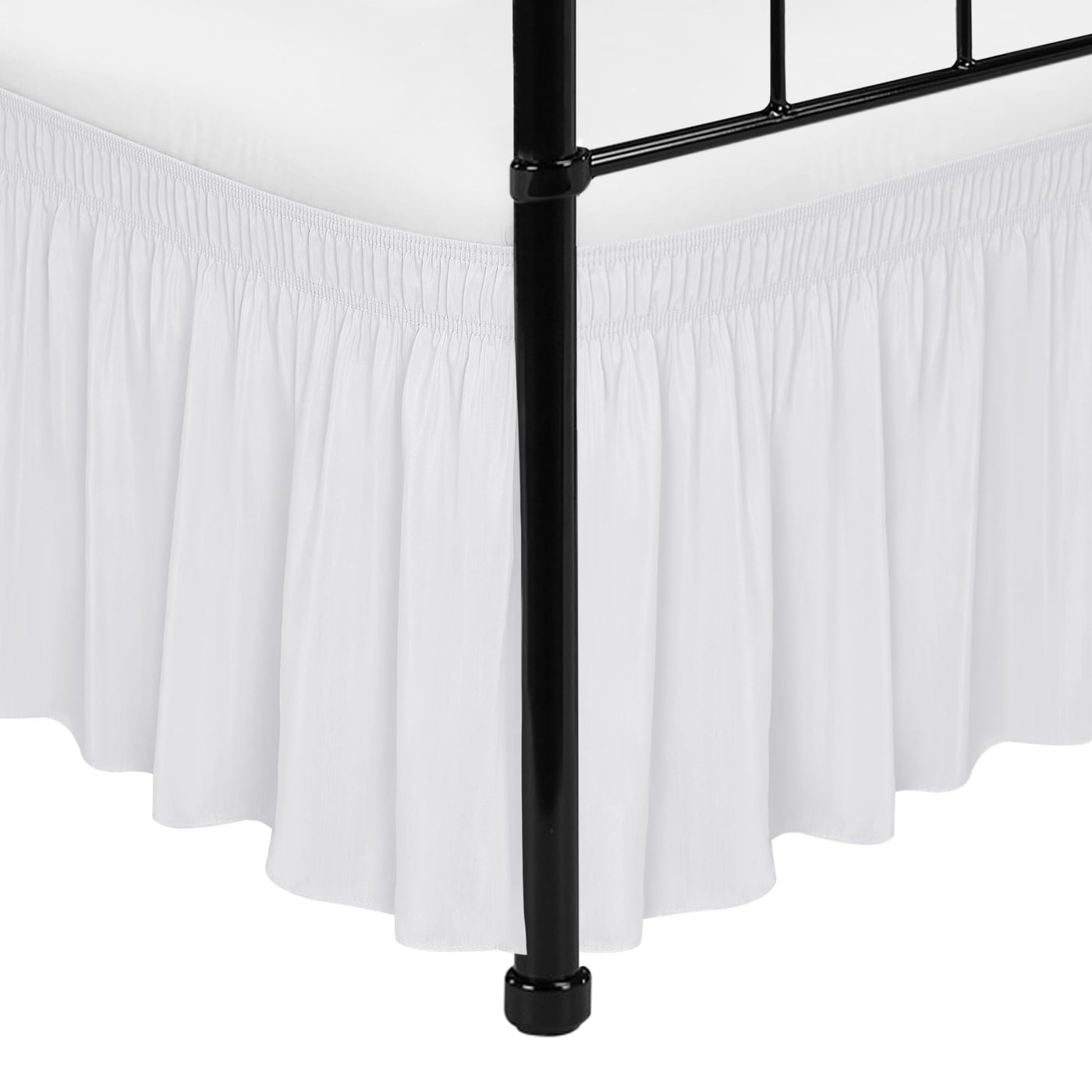 Biscaynebay Wrap Around Bed Skirts With Split Corners For Queen Beds 18' Drop, White Adjustable Elastic Dust Ruffles Easy Fit W