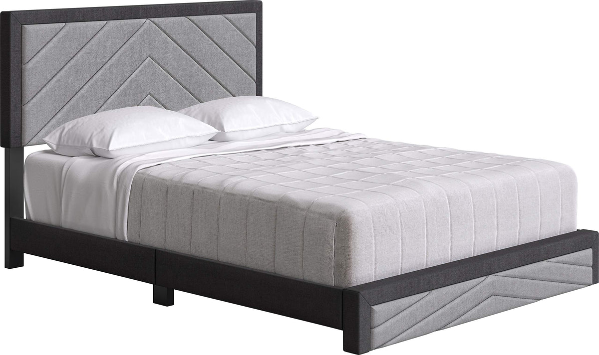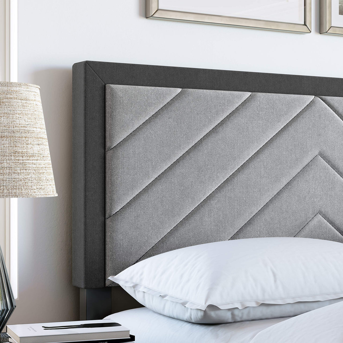 Boyd Sleep Barcelona Upholstered Platform Bed with Headboard and Durable Mattress Foundation with Strong 14 Wood Slat Supports, No BoxSpring Required: Full, Black/Gray
