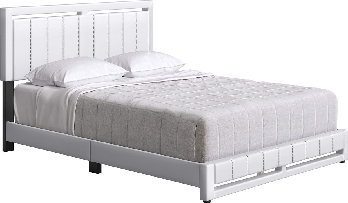 Boyd Sleep Beaumont Upholstered Platform Bed with Headboard, Mattress Foundation with Strong 14 Wood Slat Supports, No Box Spring Required, White Faux Leather, Size Queen