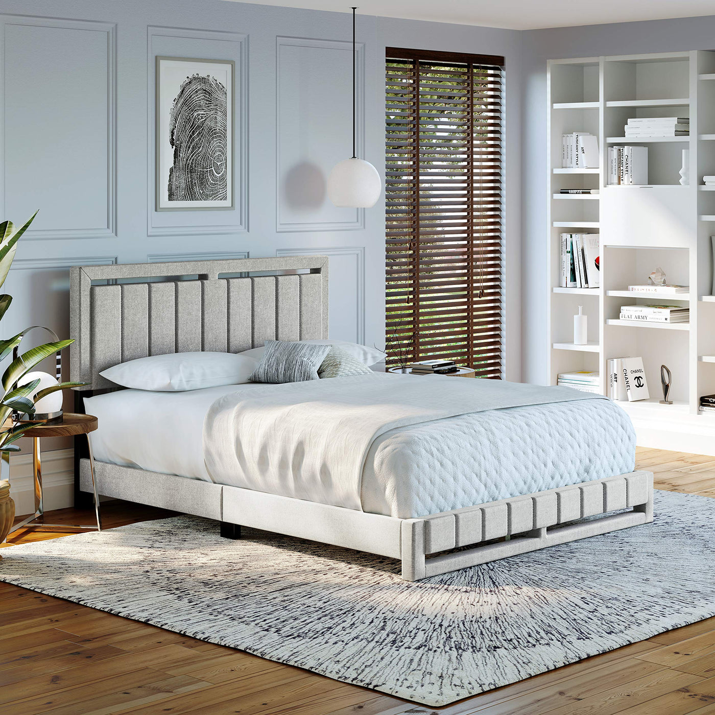The Senate Linen upholstered platform bed frame will create intrigue to any bedroom. This platform bed is contemporary in style, with stitching detail on Both Vertical ITS HEAD BOARD and footboard. Transform your room in minutes, since the Senate is shipped in one box and easy to assemble.El frame upholstered bed linen Senate Create intrigue and any bedroom. This is because contemporary platform bed, with its vertical seam detail Both of the foot in the headers. The Transformative room Within minutes of question, since the Senate boxed and sent It It is easy to assemble.