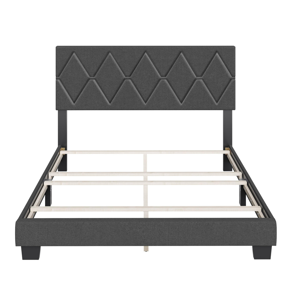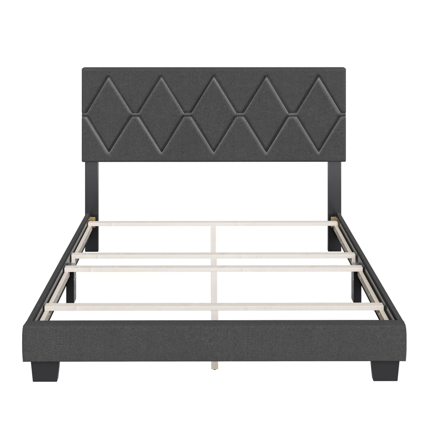Boyd Sleep Diamond Upholstered Platform Bed with Headboard and Durable Mattress Foundation with Strong 4 Wood Slat Supports, Box Spring Required: Queen, Black