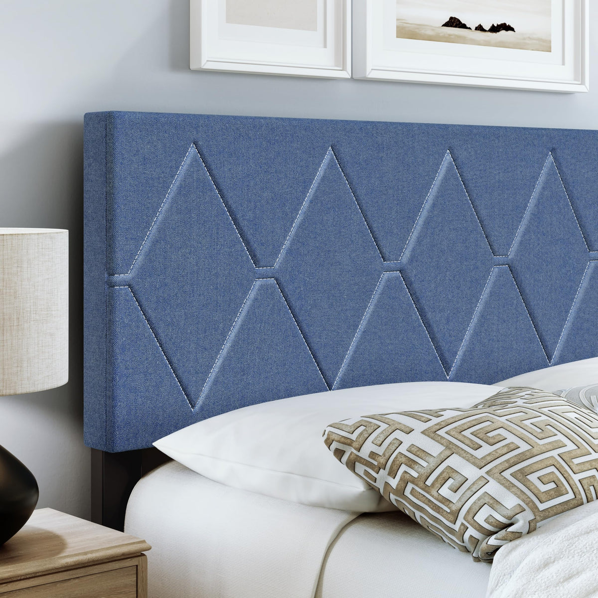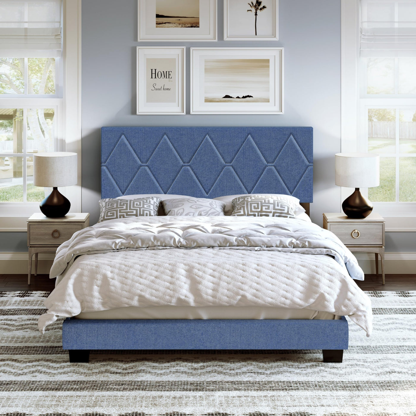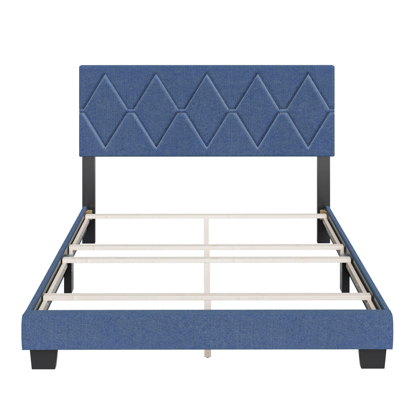 Revamp your bedroom today with the Diamond Upholstered Linen Platform Bed. This contemporary upholstered platform bed features exquisite diamond stitching detail on the headboard. Available in blue/white stitching, black/gray stitching or gray/black stitching, you’re sure to find an option that suits your preference. The Diamond platform bed goes with any type of decor, no matter the aesthetic. Sturdy and built to last, the Diamond Linen Platform Bed will add style and class to any master bedroom or guest room for countless years to come.